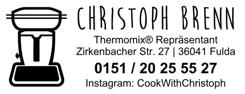Hallo, ich bin Christoph Brenn aus Fulda und arbeite als Thermomix Repräsentant in der Region Fulda und der Rhön. In persönlichen Vorführungen zeige ich dir, wie vielseitig und einfach Kochen mit dem Thermomix im Alltag sein kann. Wenn du den Thermomix kennenlernen möchtest oder neue Ideen und Rezepte suchst, unterstütze ich dich gerne mit Tipps, Inspiration und praktischen Einblicken rund um das Kochen mit dem Thermomix.